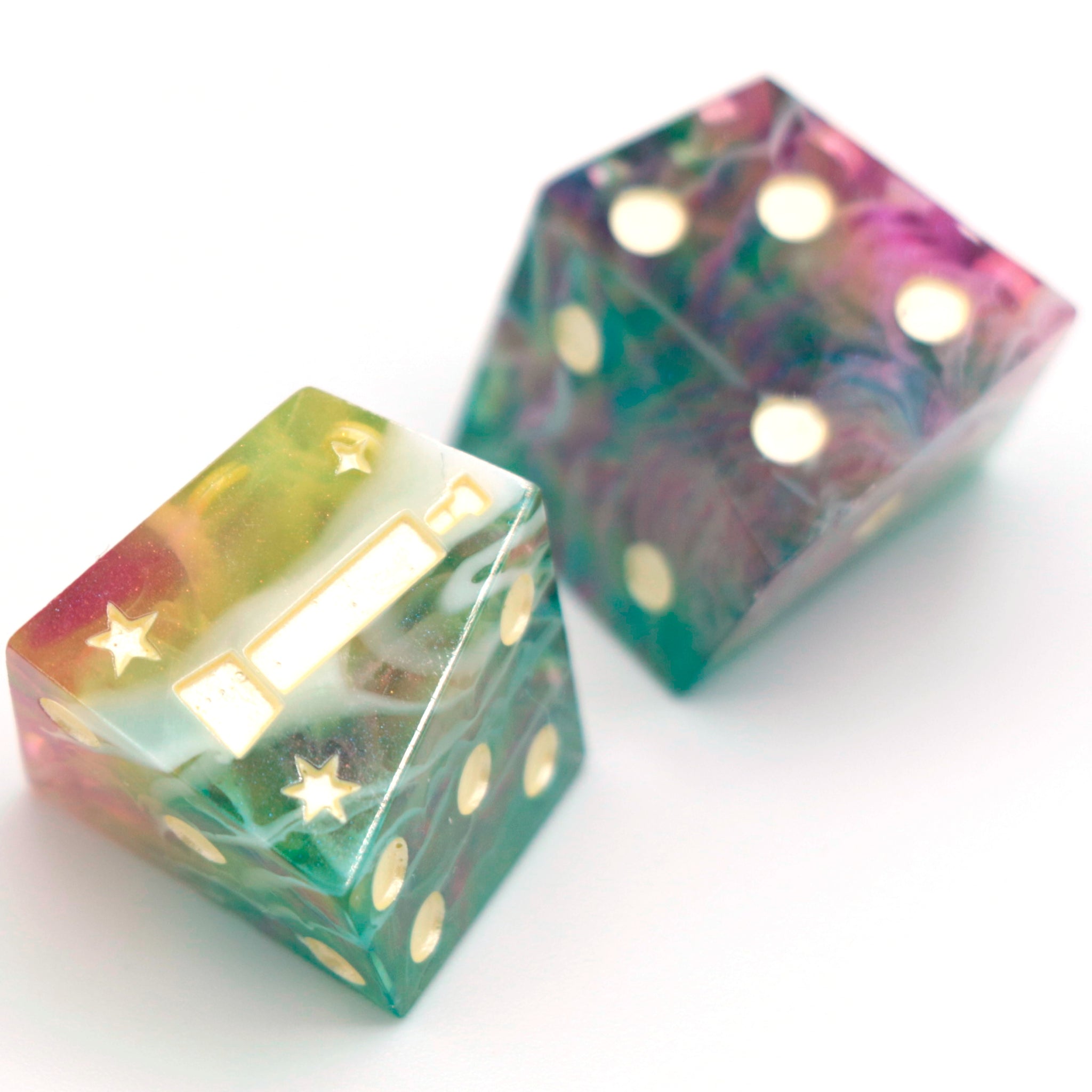 Please be aware these dice are handmade and therefore may have micro scratches, mold marks, or small nicks. Any notable flaws will be listed below.