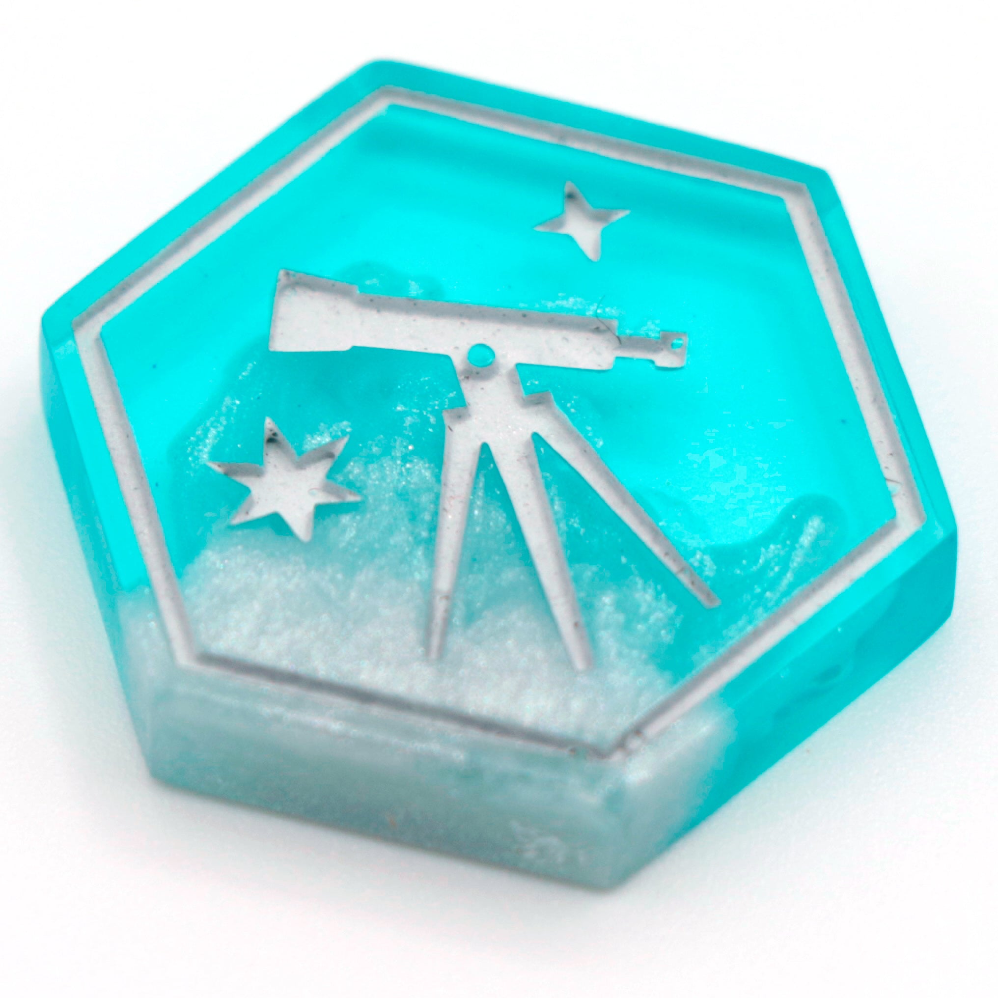 Part of a series of dice inspired by the Allomancy magic system in Brandon Sanderson's Mistborn series. This design is specifically inspired by Malatium, the god metal alloy also referred to as the Eleventh Metal.