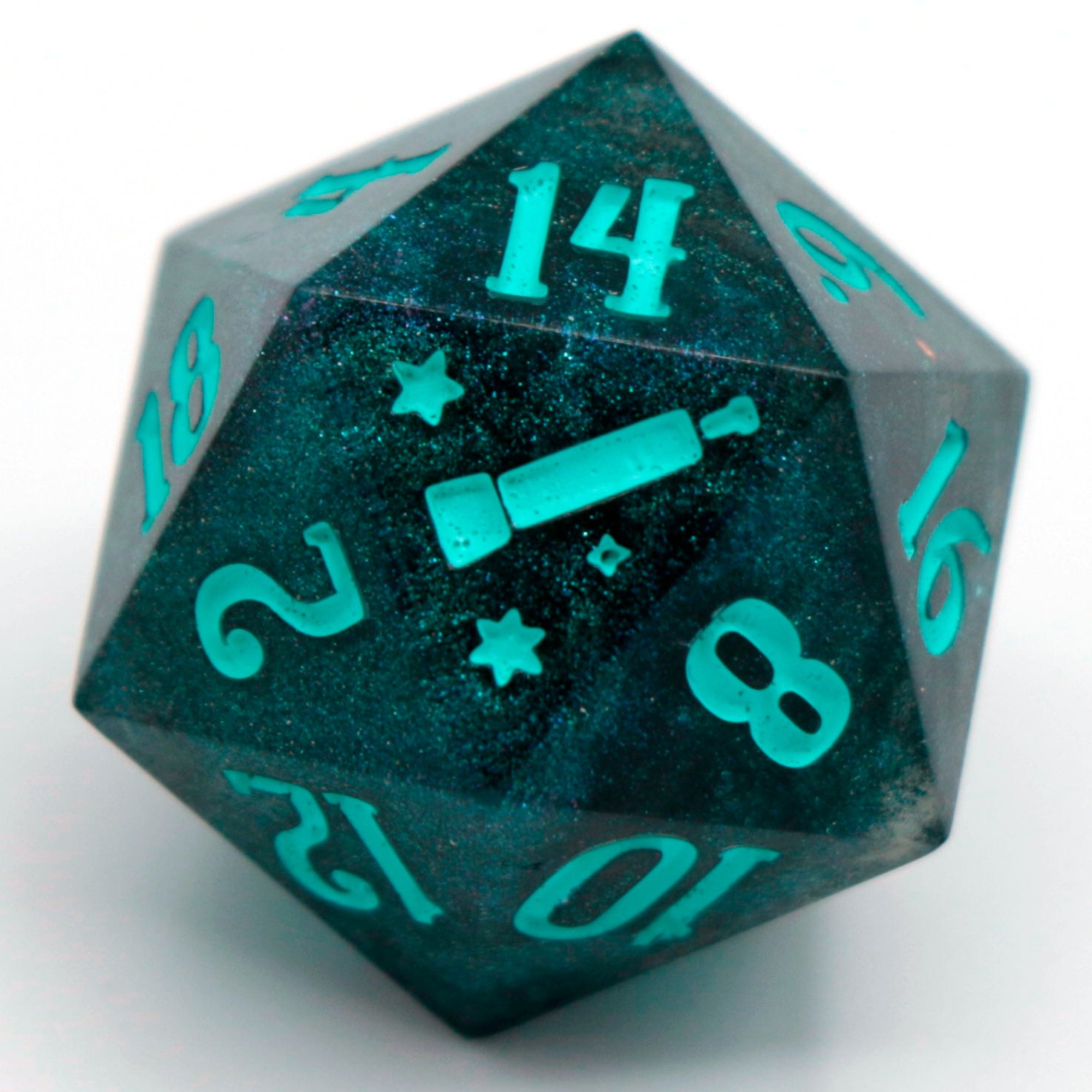 This listing is for a single d20.Please be aware these dice are handmade and therefore may have micro scratches, mold marks, or small nicks. Any notable flaws will be listed below.Notable flaws: None