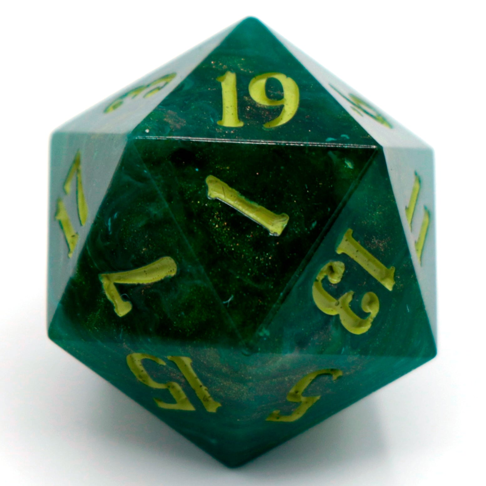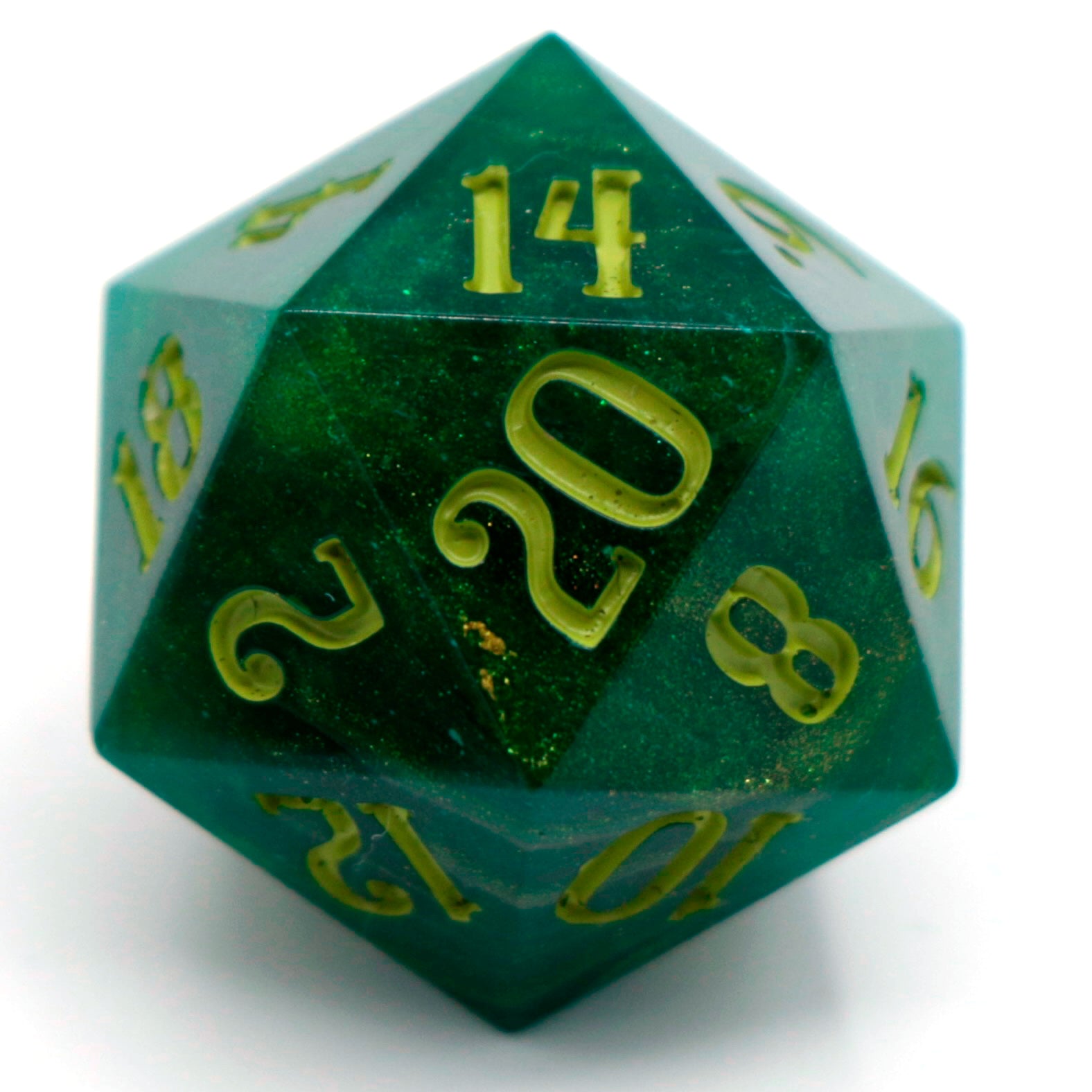 This listing is for a single d20.Please be aware these dice are handmade and therefore may have micro scratches, mold marks, or small nicks. Any notable flaws will be listed below.Notable flaws: None
